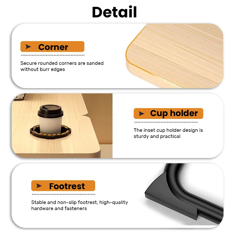 SCIENTIFIT DESIGN: Curved desktop edge, curved tabletop, ergonomic design, protective layer around the desktop, so you can feel comfortable when using. The desktop card slot and cup slot design makes it easy and convenient to put mobile phones, iPads, books, water and beverages on.