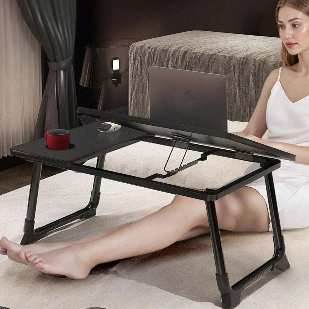 Built with foldable legs for effortless storage, a secure cup slot for your drinks, and a reading holder for books or tablets, the FlexiLap Bed Desk keeps everything within reach. Its lightweight yet sturdy design ensures stability while giving you the freedom to work, study, or relax anywhere.