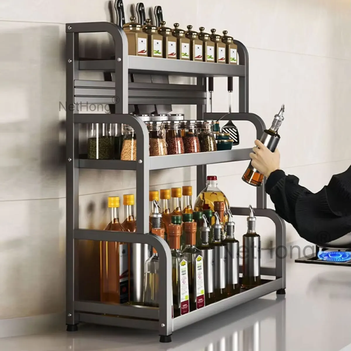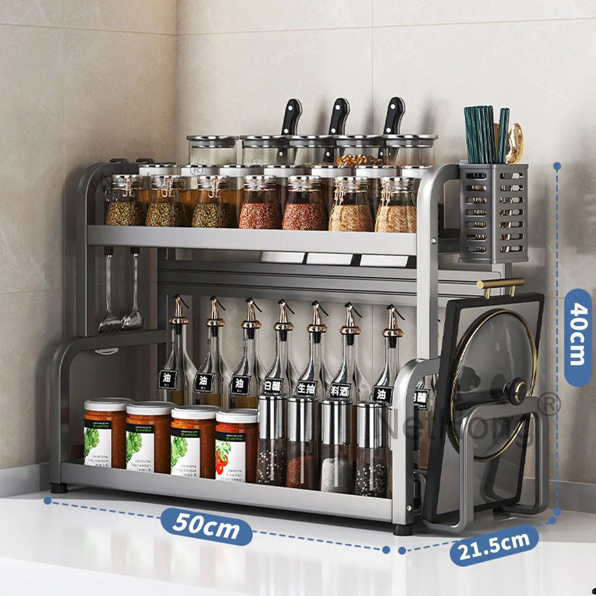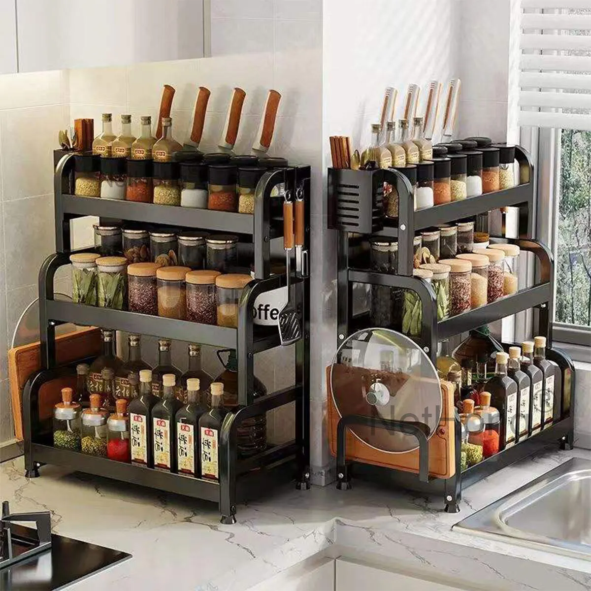 Use it to store spices, jars, condiments, or even mugs and dishware. Its sturdy frame and clean lines make it a standout piece in any kitchen, pantry, or utility area. Whether you're organising essentials or displaying your favourites, this rack brings order and sophistication to your everyday routine.